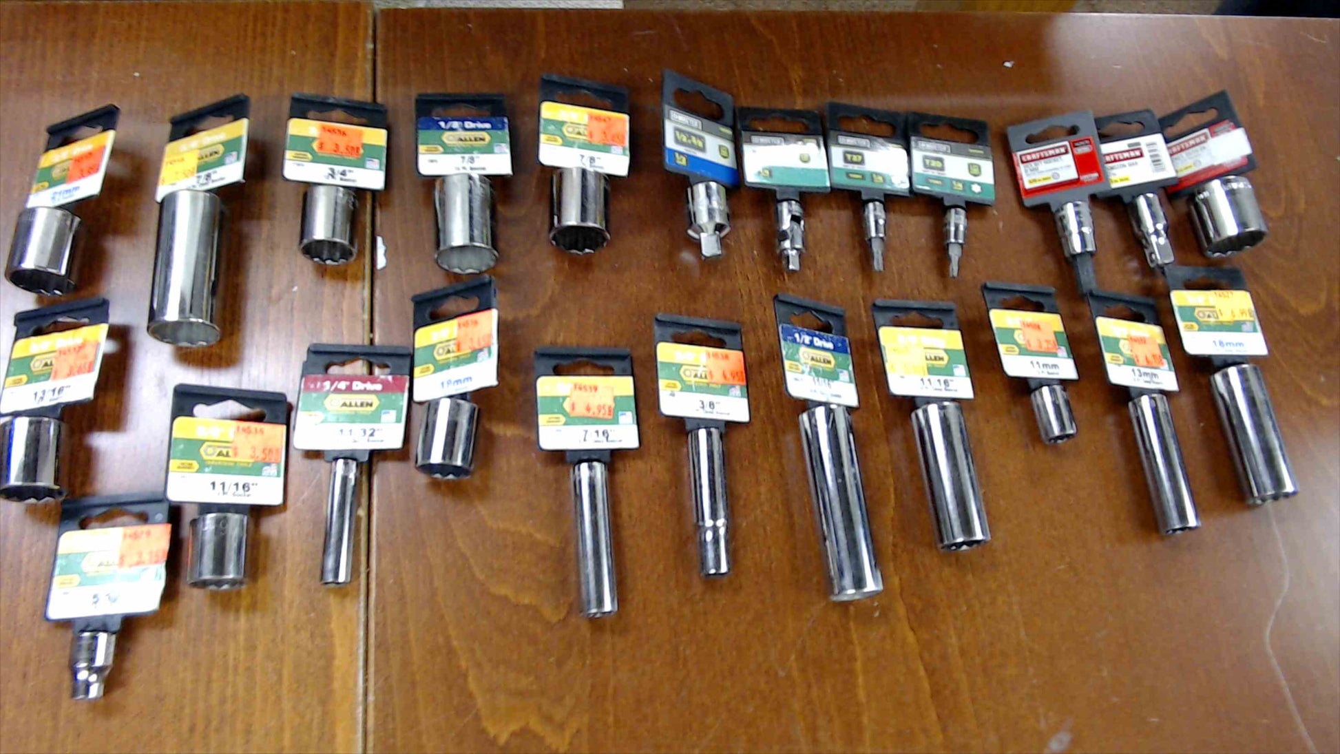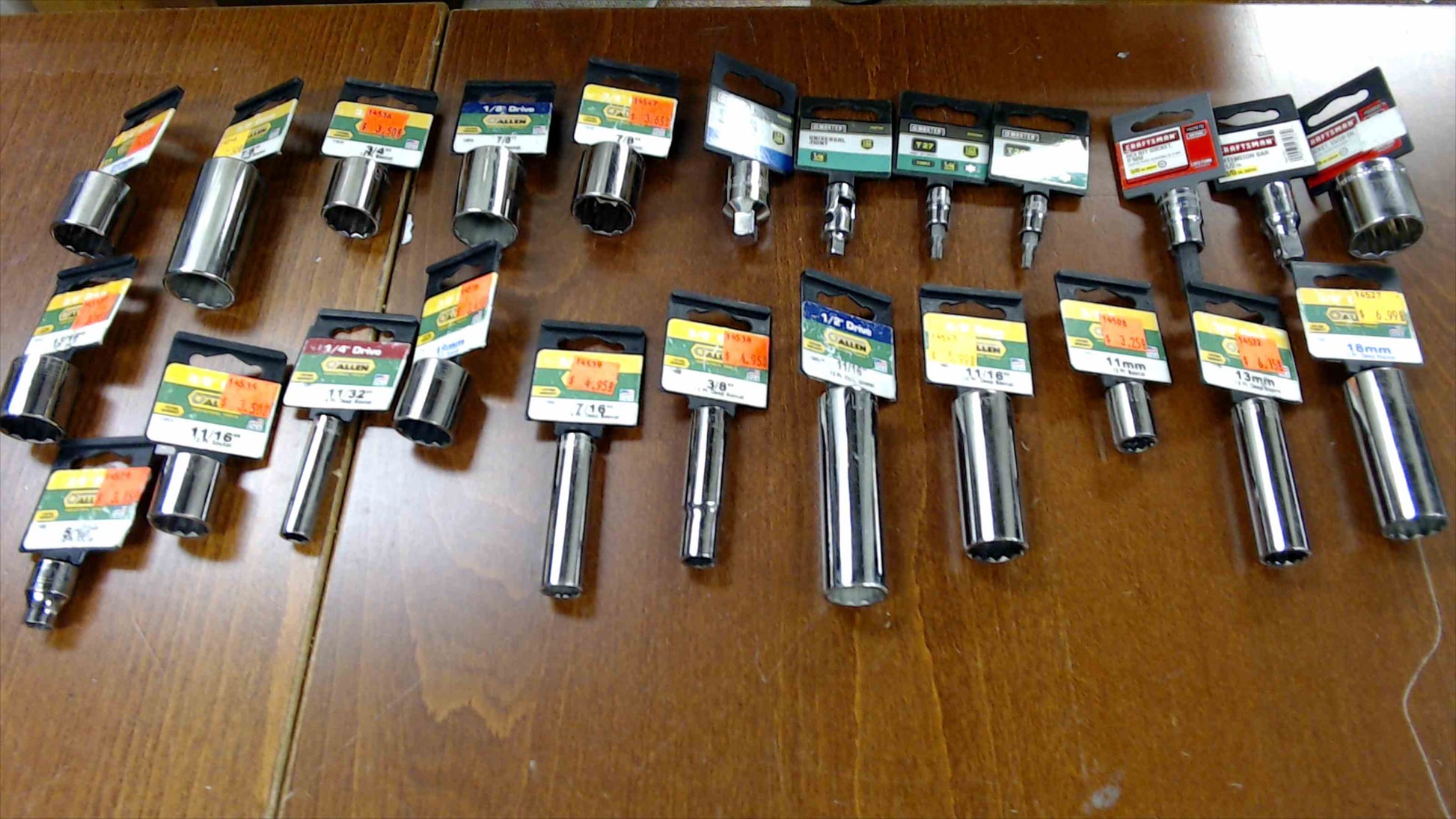This is a 24-piece assorted socket lot featuring a mix of Allen, Craftsman, and Master brand sockets, adapters, and specialty bits. Includes both SAE and metric sizes in deep and standard lengths. The set covers common drive sizes (1/4", 3/8", and 1/2") along with extensions and Torx/star bit drivers. Perfect for mechanics, DIYers, or anyone looking to expand their socket collection with quality U.S. and pro-grade brands.