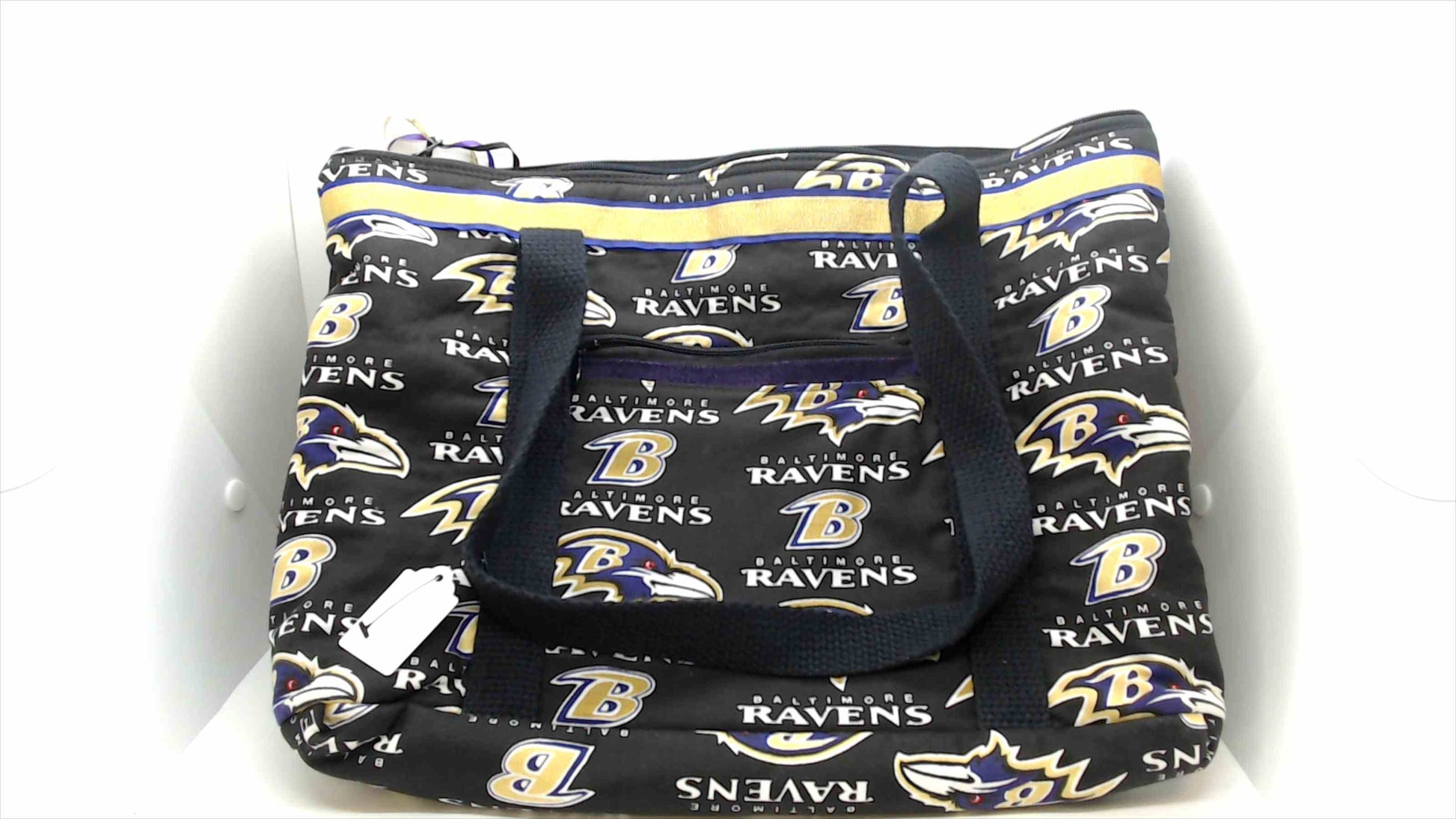 Show off your team pride with this officially licensed Baltimore Ravens quilted fabric tote bag. Featuring an all-over Ravens logo print in bold team colors, this spacious bag includes a front zip pocket and sturdy double shoulder straps, making it perfect for game day, everyday errands, or as a stylish carry-on. Soft quilted texture gives it a comfortable, casual feel.