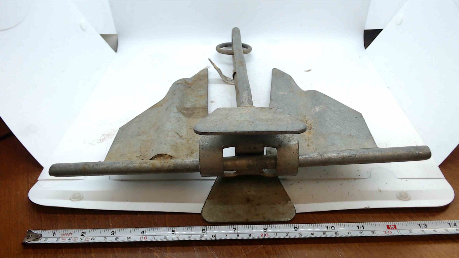 Lightweight, galvanized steel fluke (Danforth-style) anchor. Great holding power for mud/sand bottoms and ideal for small craft. The flukes pivot freely and the stock and shank are straight. Shows honest use—galvanizing wear, surface rust, and scuffs (see photos), but solid and ready to rig.