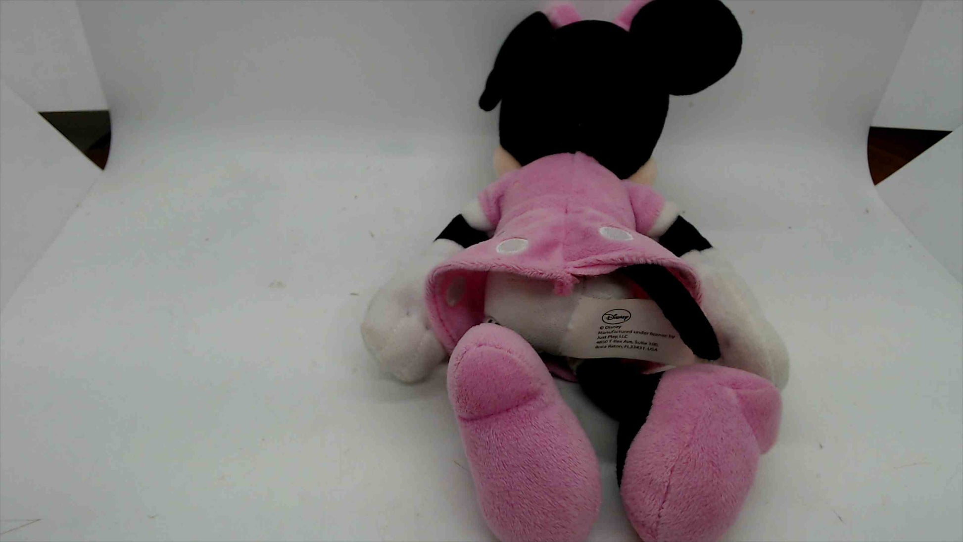 This Disney Minnie Mouse plush features the beloved character in her adorable light pink dress with white polka dots and a matching bow. Made from soft, high-quality plush material, this Minnie is perfect for cuddling, display, or gifting to any Disney fan.