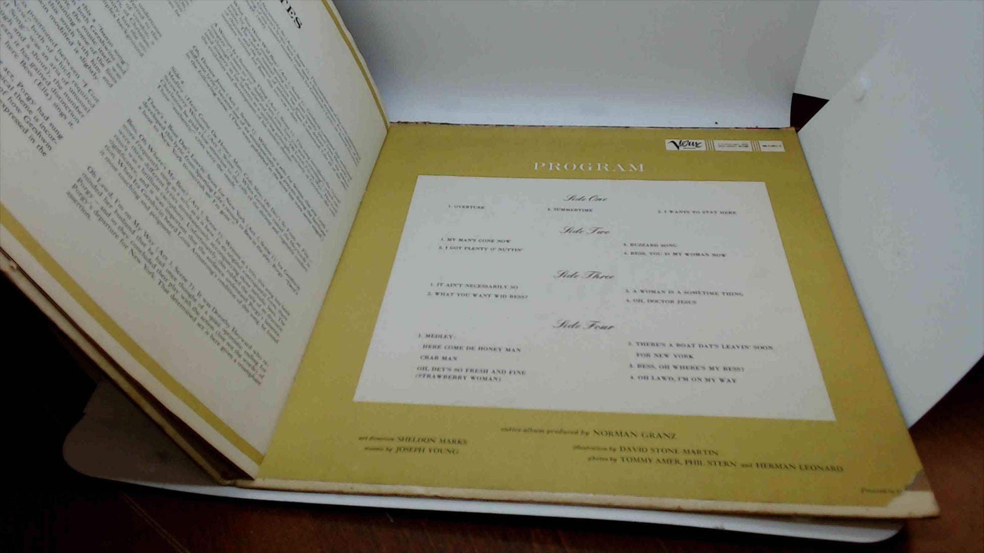 This is a vintage 2-record gatefold LP set of Porgy & Bess performed by Ella Fitzgerald and Louis Armstrong, released by Verve Records (Catalog # MG V-4011-2). Featuring orchestral arrangements conducted by Russell Garcia, this collectible set includes the original booklet insert and both vinyl records in excellent condition.