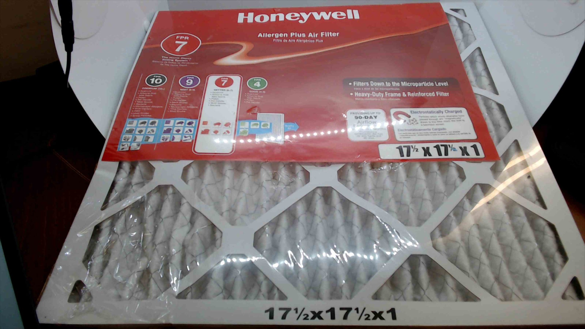 Improve your indoor air quality with this Honeywell Allergen Plus Air Filter (Size: 17.5" x 17.5" x 1"). Rated FPR 7 (Better), this filter effectively captures household dust, lint, pollen, mold spores, and pet dander. Designed with a heavy-duty frame and reinforced electrostatically charged filter media, it traps particles down to the microparticle level. Provides up to 90 days of performance for cleaner, fresher air in your home.