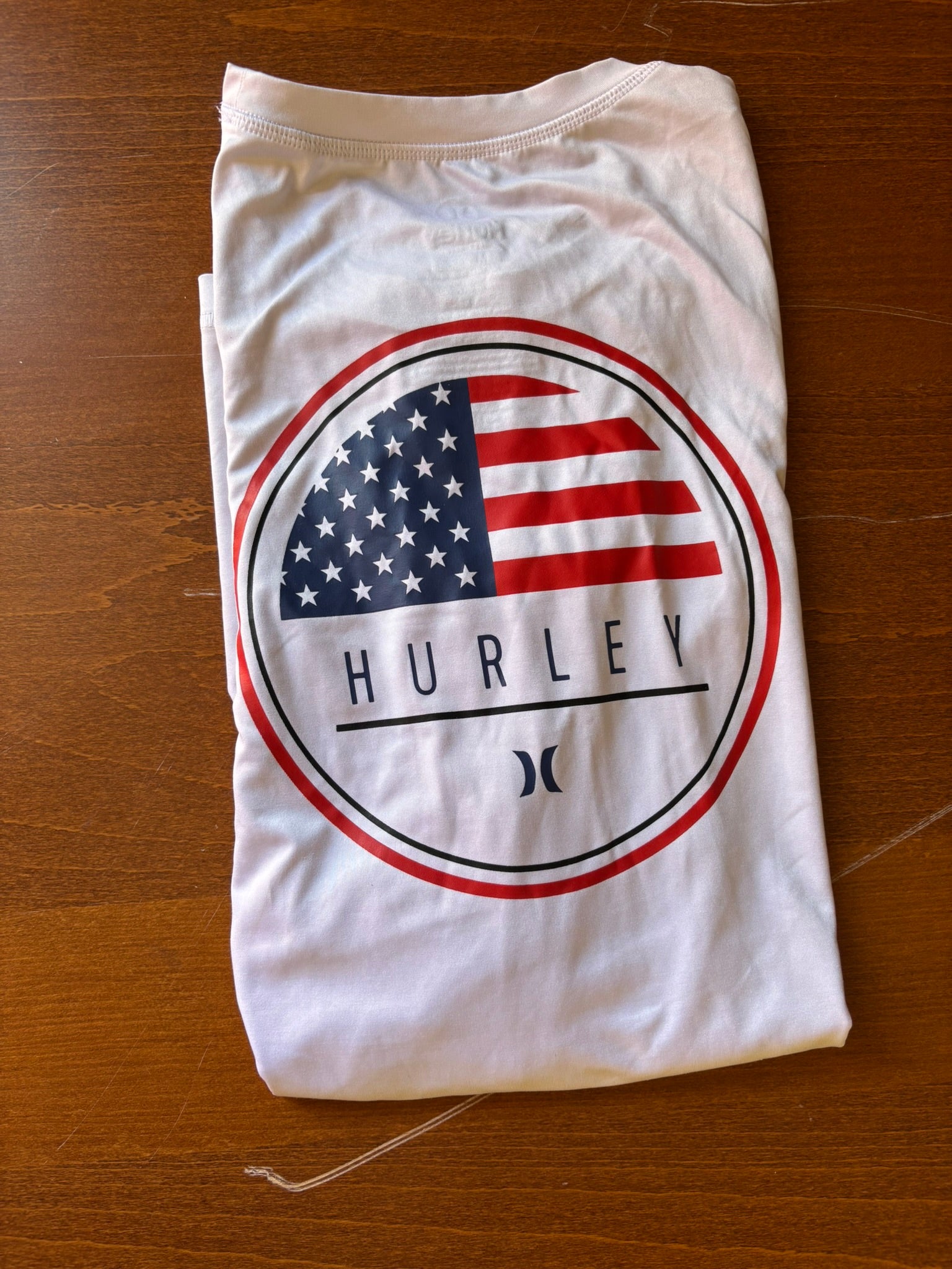Hurley Men’s White Graphic T-Shirt – USA Flag Logo (Limited Edition)