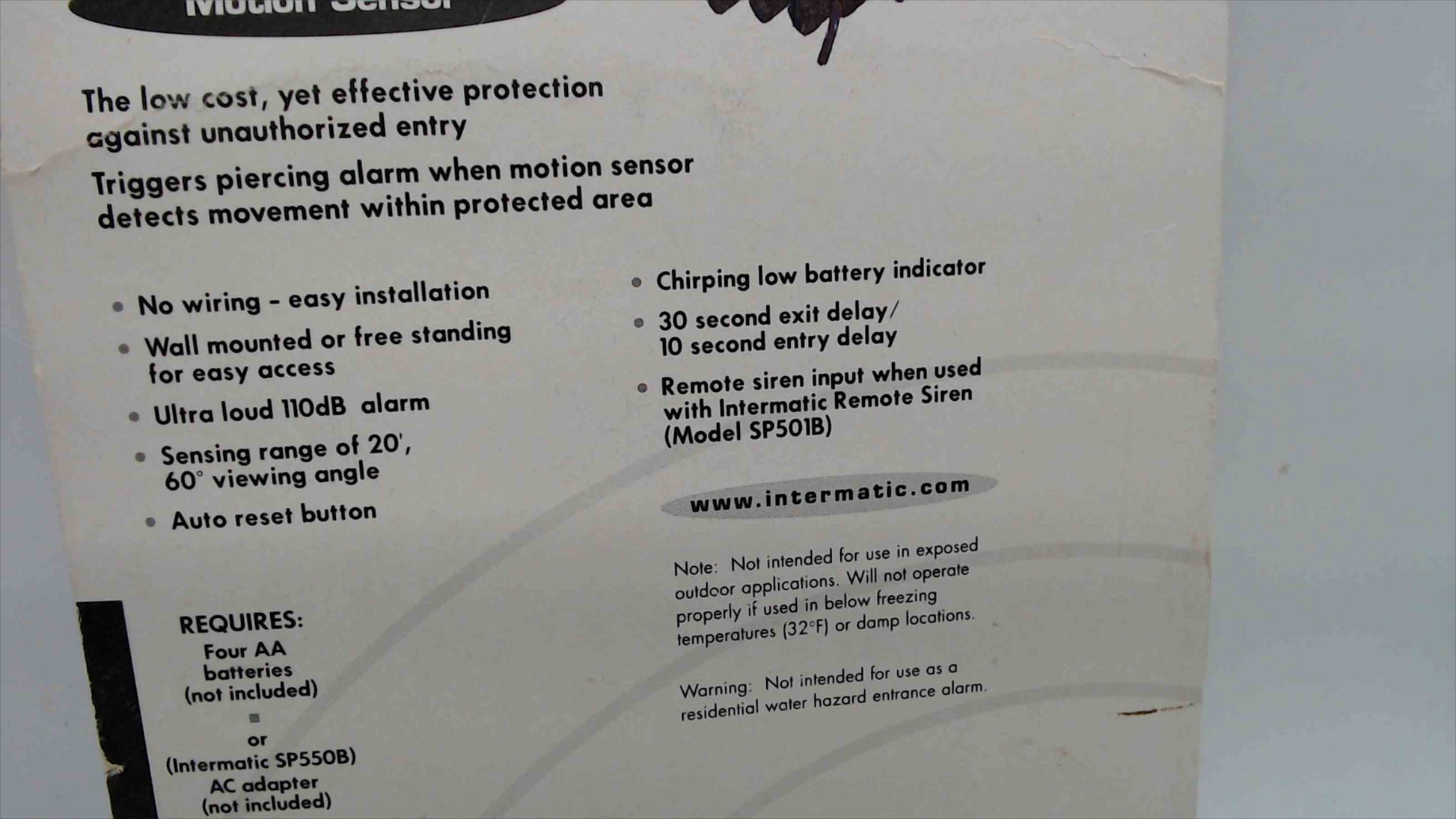 Keep an extra eye on doors, hallways, garages, or shops with this Intermatic Remote Control Wireless Alarm. Blister pack is factory sealed.