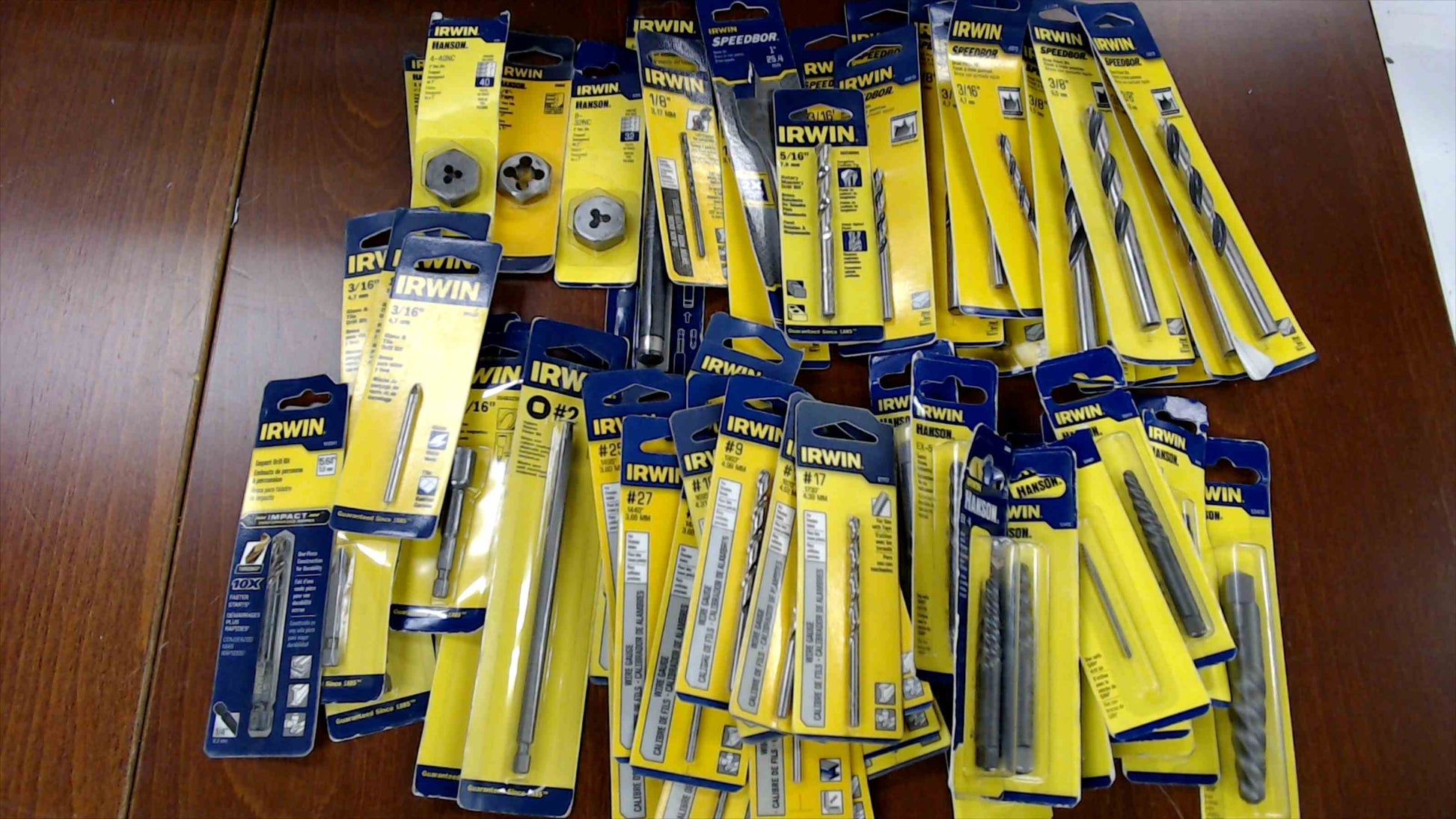 Large bulk lot of 67 Irwin brand tools, all brand new in original packaging. This mixed assortment includes drill bits, extractors, taps, dies, and driver accessories — perfect for contractors, machinists, DIYers, or resellers.