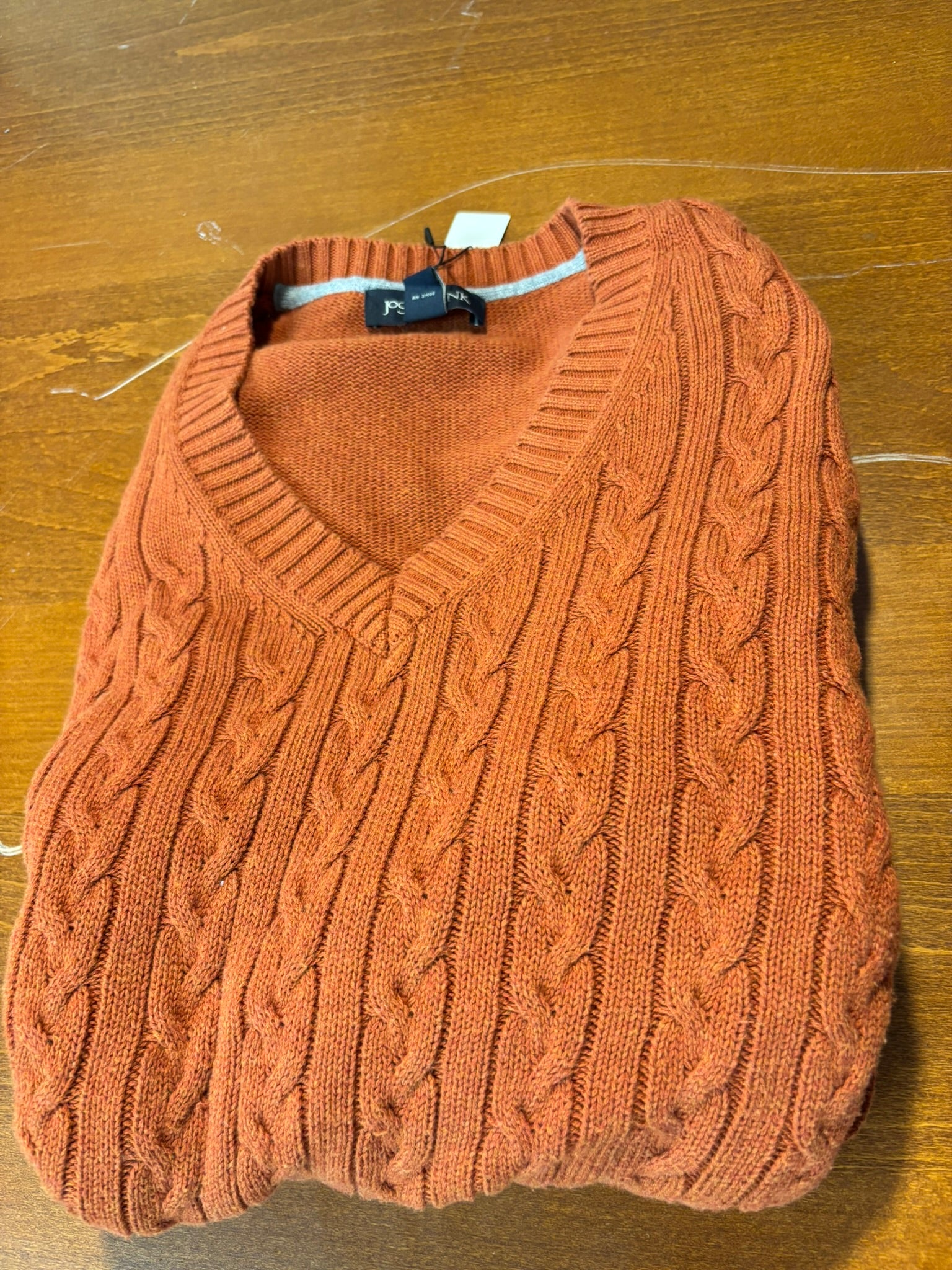 Jos. A. Bank Tailored Fit Rust Cable-Knit V-Neck Sweater