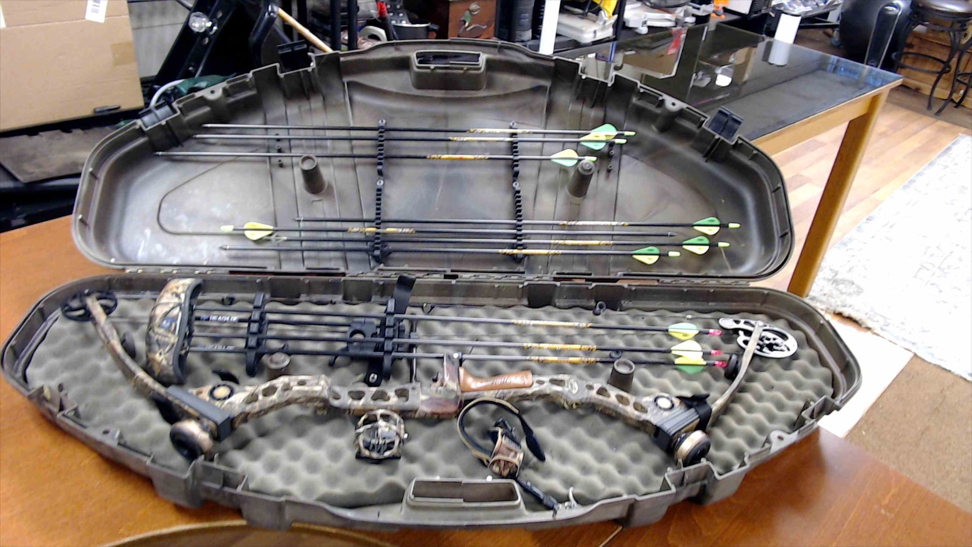 Matthews Solo Cam Compound Bow with Case Used, Hunt Ready in Excellent Condition. Bow draw length extra long as previous owner was 6'7". Includes 10 ICS Bowhunter 400 carbon fiber arrows, True Fire release, quiver, 4 razor points and 5 practice tips.