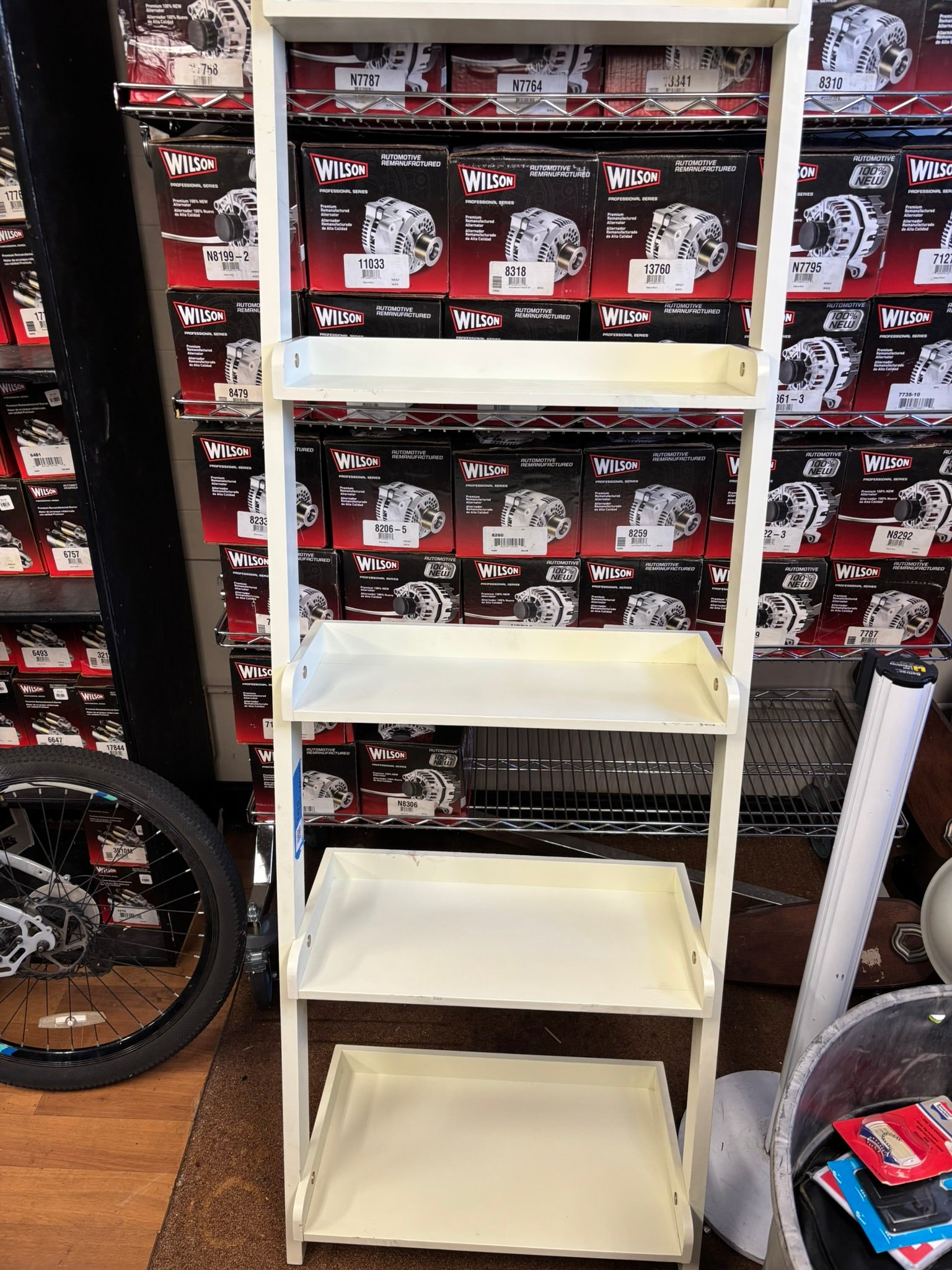 Modern White Ladder-Style Bookshelf – 5-Tier Storage Rack (76" x 14" x 26")