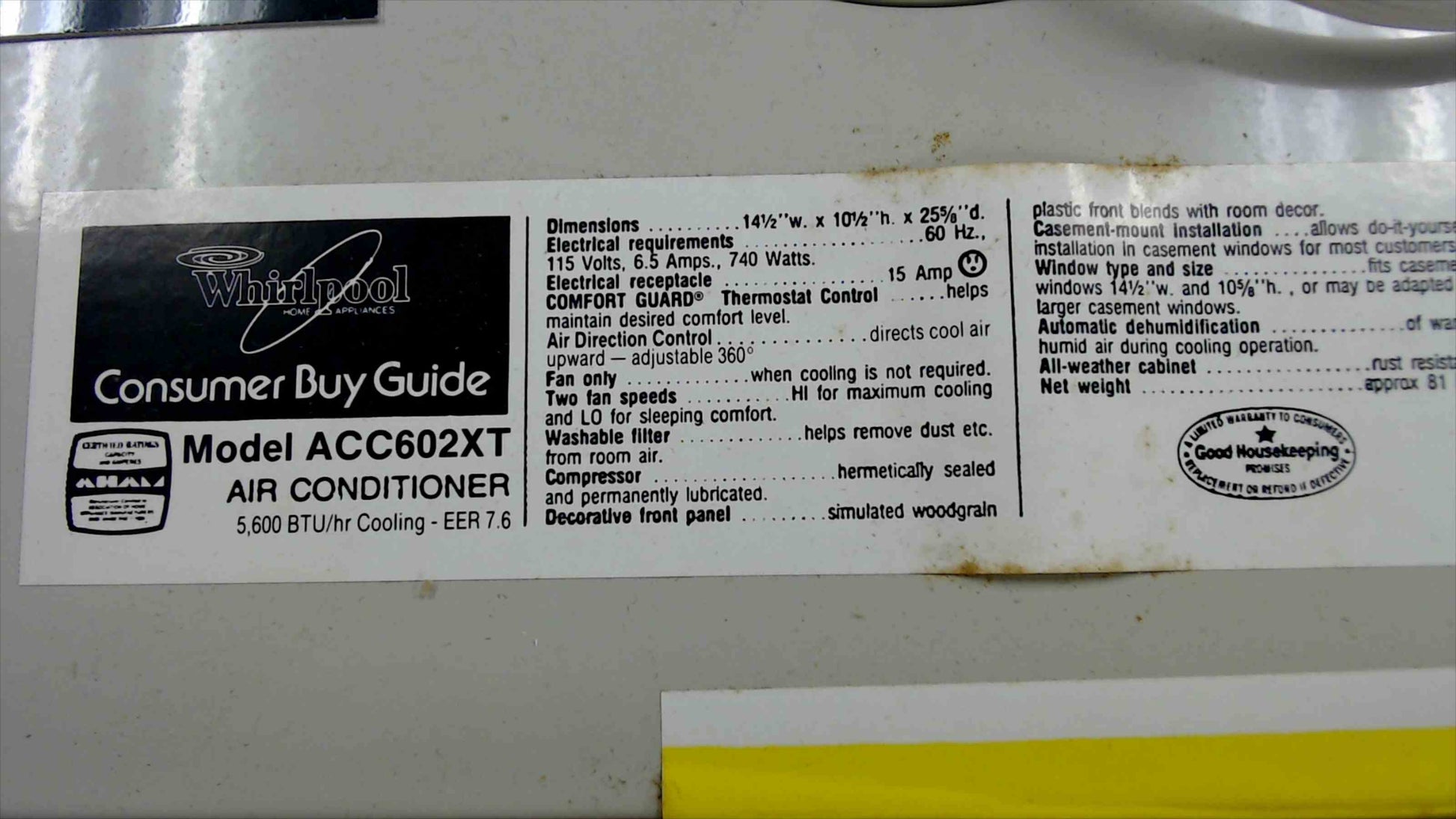 New Whirlpool ACC602XT 5,600 BTU Casement Window Air Conditioner