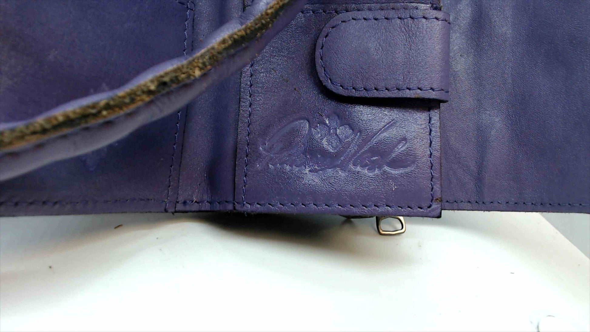 This authentic Patricia Nash handbag and matching wallet set is crafted from genuine leather in a striking purple hue. The bag features intricate tooled floral embossing, silver-tone hardware with a decorative cross accent, and rolled leather handles. The spacious interior is lined and includes multiple compartments for organization. The matching tri-fold wallet offers card slots, a zippered pocket, and the same embossed leather styling, making this a complete set.