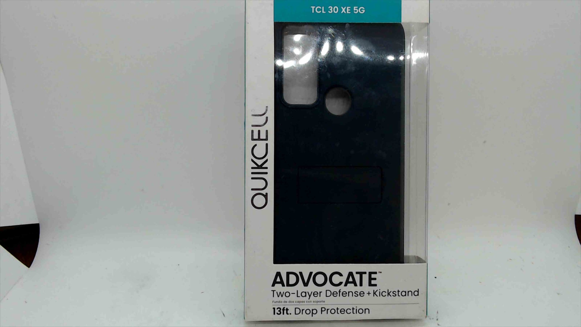 Rugged Quikcell ADVOCATE protective case made specifically for TCL 30 XE 5G. Features dual-layer shock-absorbing construction, built-in kickstand for hands-free viewing, raised bezels for screen/camera, and precise cutouts. Rated 13-ft drop protection. New in retail packaging (box may show minor shelf wear).