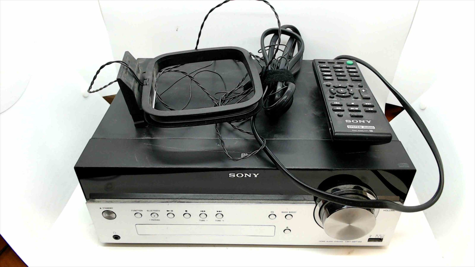 For sale is a Sony CMT-SBT100 Micro Hi-Fi Component System, in good working condition. This versatile unit is perfect for enjoying your favorite music at home.