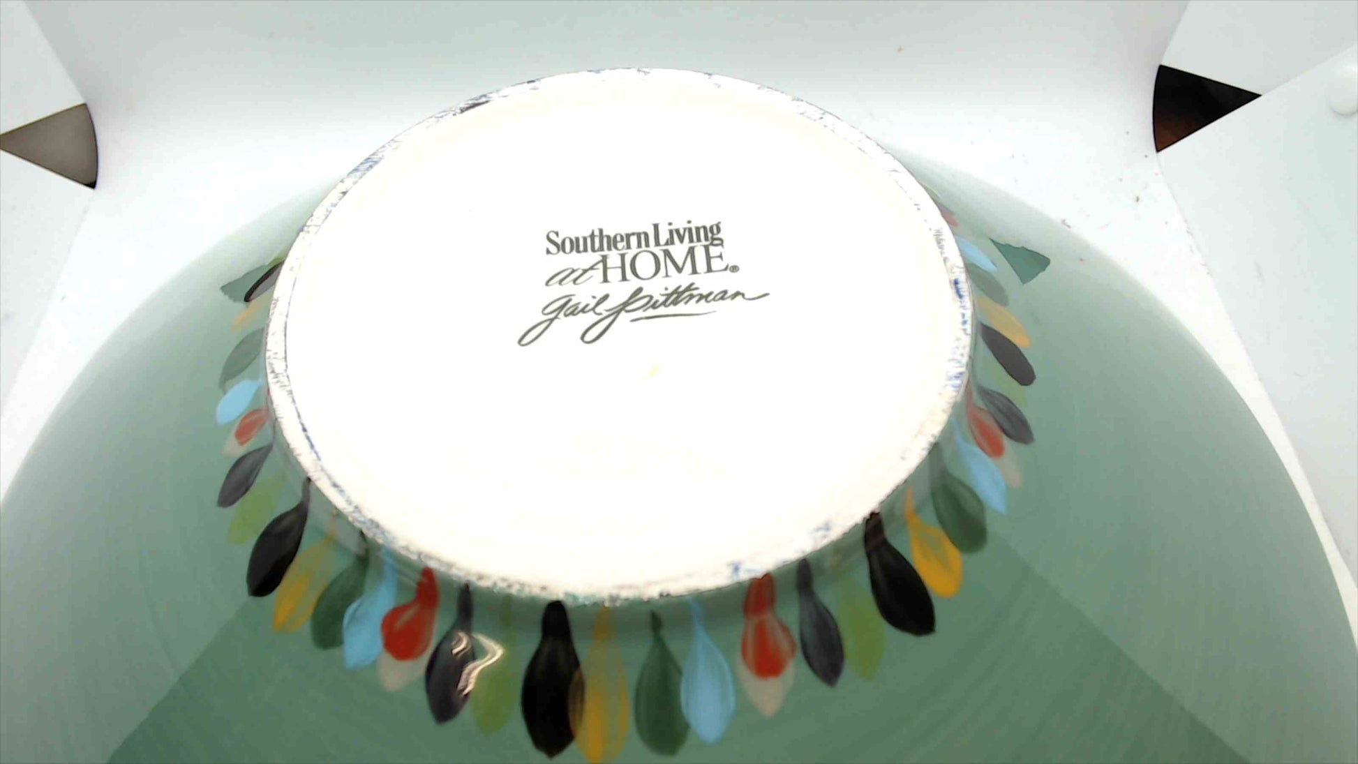 Southern Living at HOME by Gail Pittman Hand-Painted Stoneware Centerpiece Bowl w/ Wrought Iron Stand – Green Floral – Like New