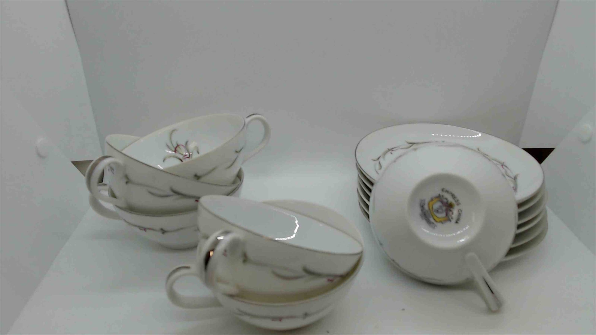 Elevate your tea time with this elegant vintage Empress China tea cup and saucer set, made in Japan. Each of the 6 cups and 6 saucers features a delicate floral and vine motif accented with fine silver trim. The dainty handles and graceful curves bring timeless charm to any collection or gathering. Perfect for display or daily use.