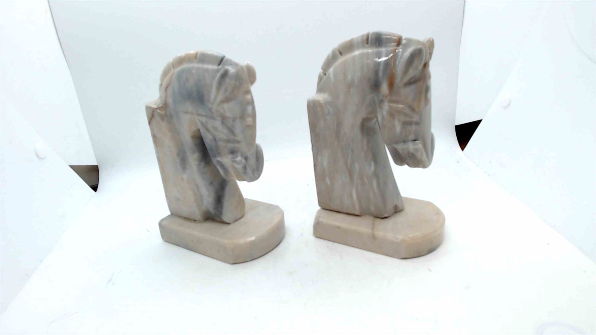 Vintage Hand-Carved Stone Horse Head Bookends – Marble/Onyx