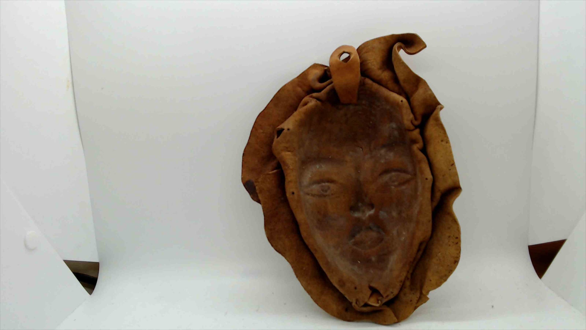 This unique wall art piece features a hand-sculpted woman’s face crafted from molded leather, framed by a softly draped headscarf. The natural tan tones of the leather give it a warm, organic presence, while the fine facial details evoke a serene and timeless expression. A built-in leather loop on the back allows for easy wall mounting. Perfect for collectors of folk art, Southwestern décor, or distinctive handmade pieces.