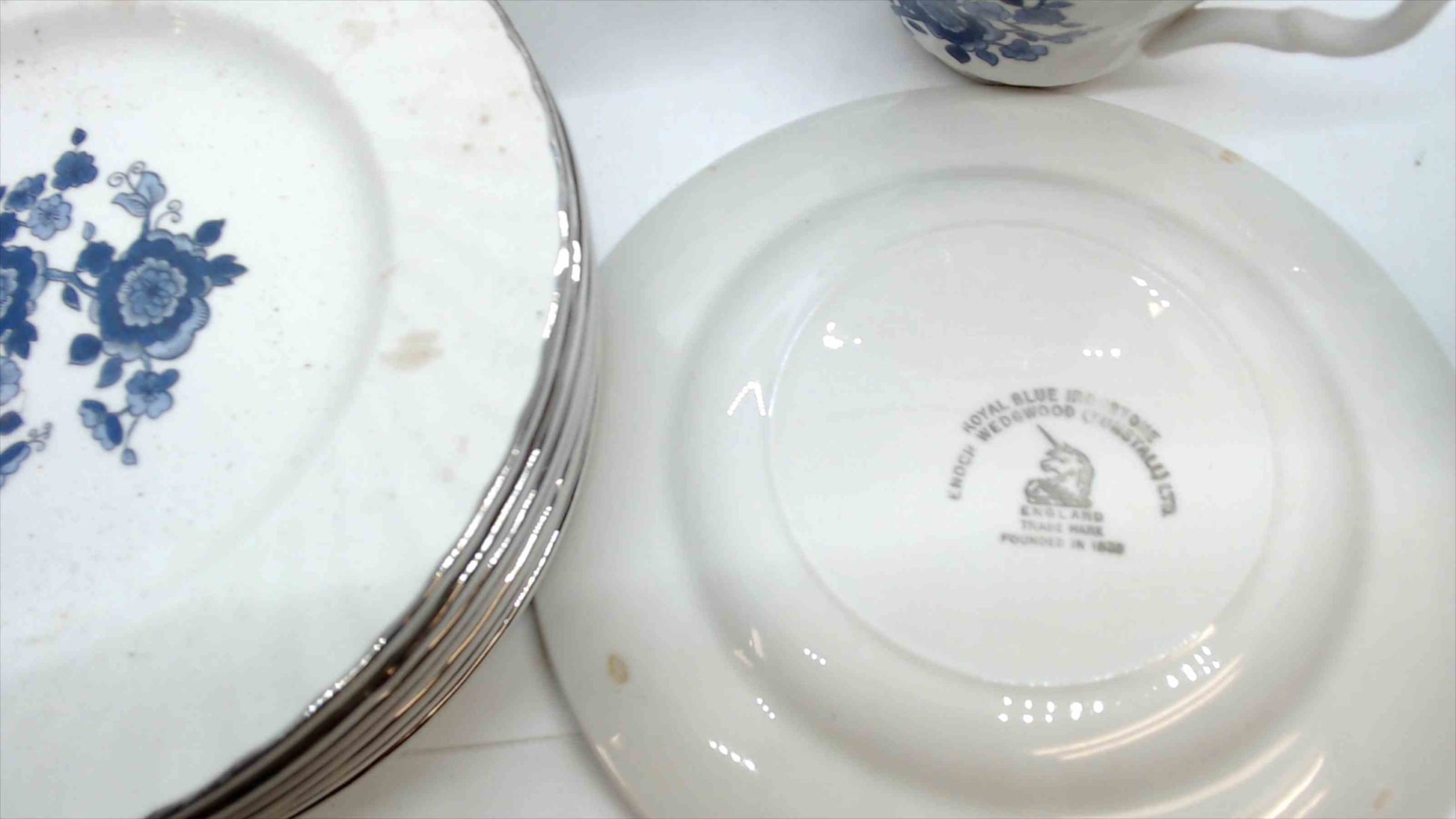 These are beautiful vintage Royal Blue Ironstone pieces by Wedgwood & Co. (Ltd) of England. Featuring a traditional blue floral pattern at the center and a delicate silver-tone trim along the rim, this piece blends classic elegance with timeless craftsmanship.