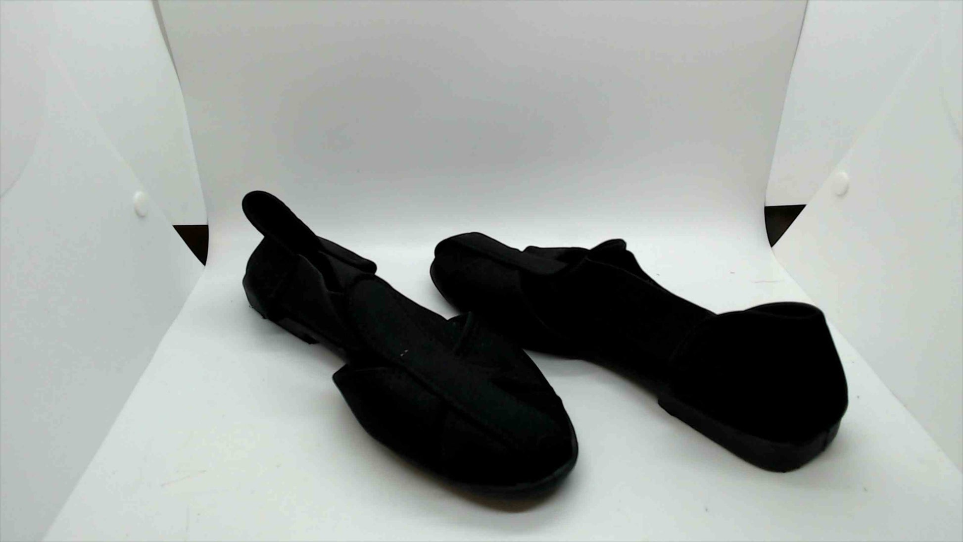 Womans Black Peep-Toe Stretch Comfort Flats - Women Size 9