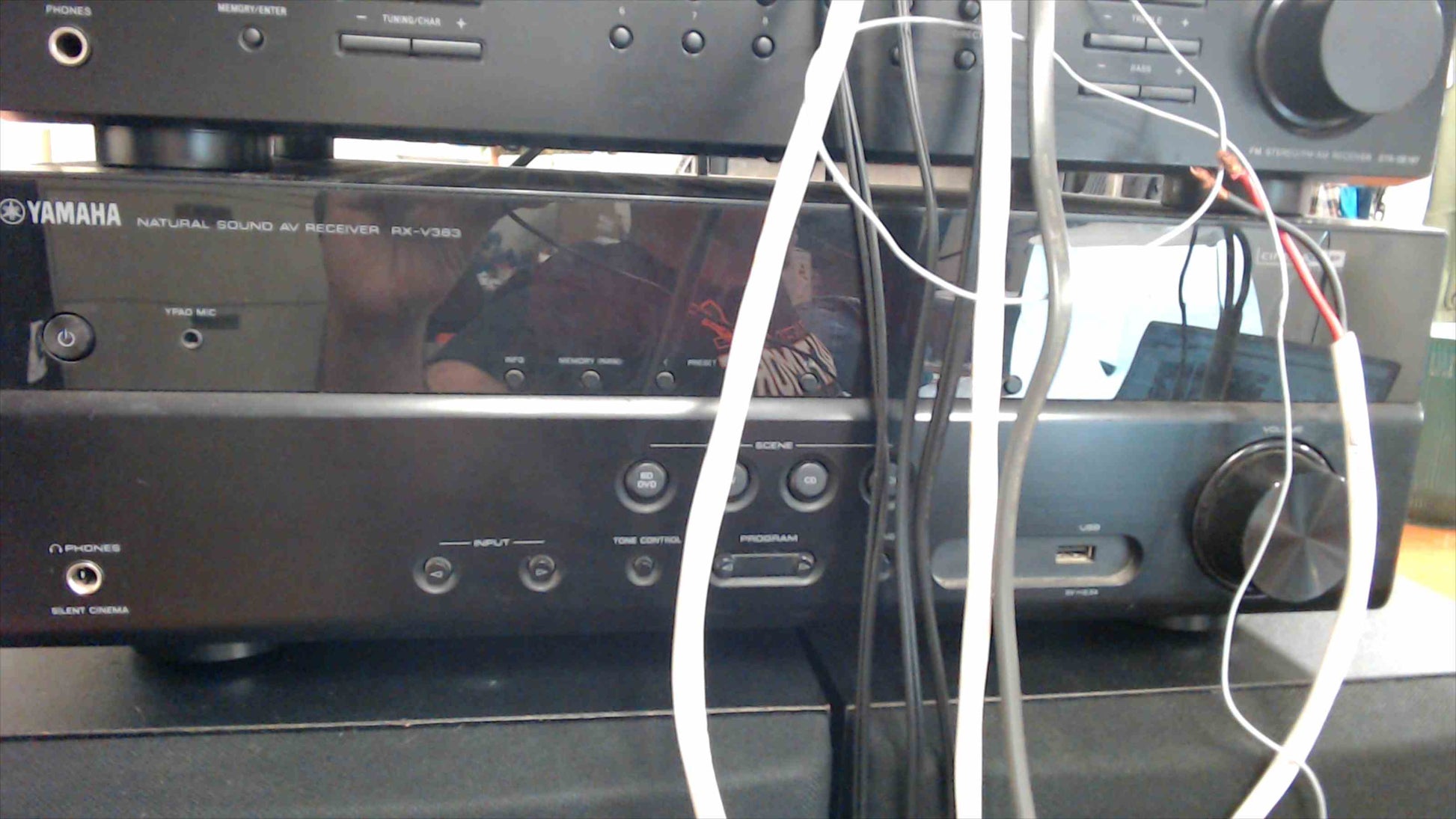 • Yamaha RX-V383 5.1 A/V receiver (clean front panel; inputs/outputs as pictured).